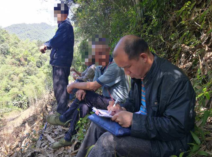 3月28日平原村调委会调解员李德基在调解山林纠纷现场