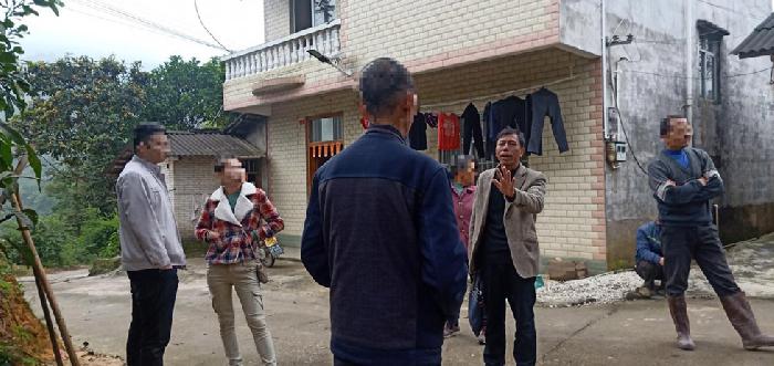 4月23日道冲村调委会调解员杜富华在调解邻里纠纷现场