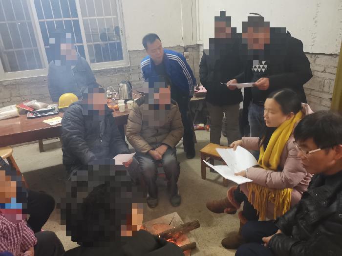 为解决纠纷,蒙山镇征地工作组决定再次组织召开调解会,蒙山镇司法所陈所长与征地工作组成员组成调解小组,于2020年12月17日晚上,冒着严寒的风雨,来到竹枝片群众家中召开两个生产小组组长、代表、涉及农户的调解会。