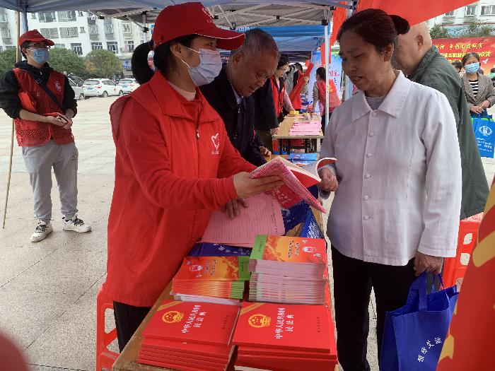 在活动现场,采取设置咨询台、悬挂横幅标语、发放宣传资料等形式开展普法宣传。为群众宣讲涉及妇女、儿童方面的法律知识,为群众答疑解惑。共发放《民法典》《便民法律汇编》《扫黑除恶宣传手册》《法律援助法》等与妇女生活密切相关的法律知识读本、物品500余份,解答法律咨询20人次。