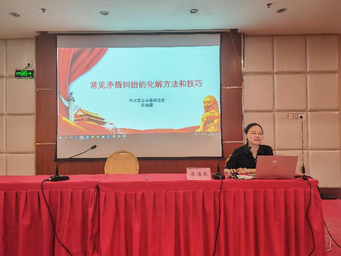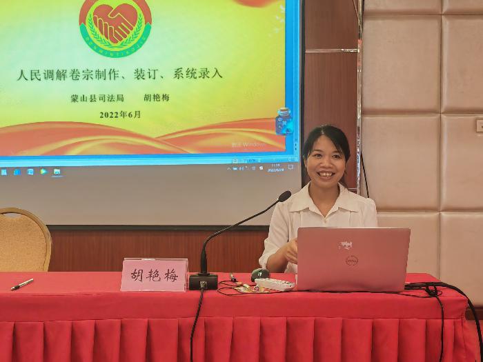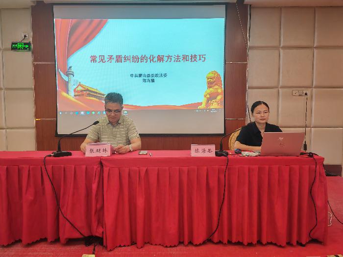 为进一步加强人民调解工作的规范化建设,全面提升全县人民调解员队伍的整体水平,弘扬好新时代“枫桥经验”,2022年6月24日蒙山县司法局在县滨江酒店十四楼会议室举办了2022年度蒙山县人民调解业务培训班,县司法局相关股室人员、全体司法所人员和各人民调解委员会调解员参加了培训。