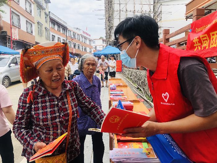 在活动现场,普法志愿者还通过发放宣传手册,向当地瑶胞们普及法律援助法、禁毒等相关法律知识,切实提高少数民族同胞的法治意识,懂得要拿起法律武器来维护自己的合法权益,做一个尊法学法守法用法的公民。此次宣传活动共发放民法典、法律援助法等各类宣传资料1000余份,受教育群众500余人。