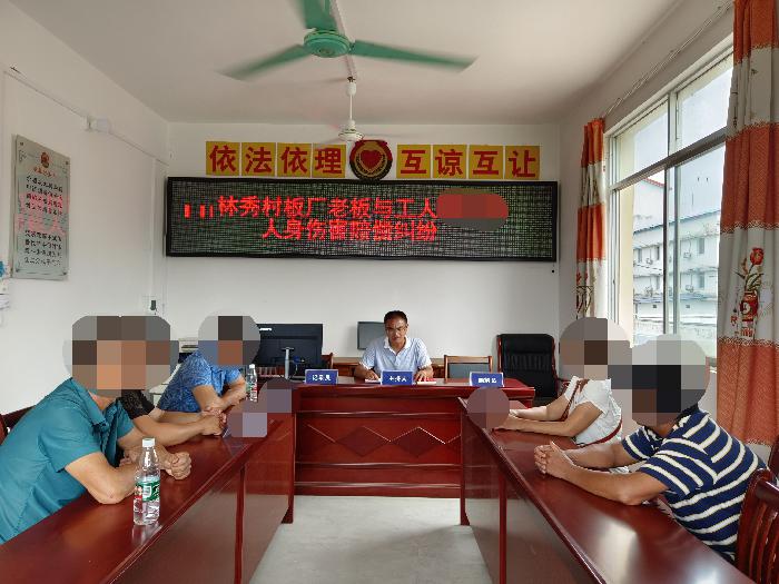 接近中午12点,板厂老板提出赔付18000元给黄某群,黄所长看到调解越来越接近双方意愿,提出让双方当事人各让一步。最终,某板厂责任人覃某扬、覃某壬共同赔偿工人黄某群共计18500元医药费,双方当事人达成一致意见,并立即在黄村司法所签订了调解协议,至此,一起复杂的矛盾纠纷得以圆满化解。