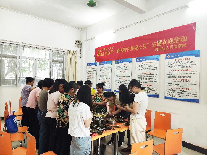 “长太息以掩涕兮,哀民生之多艰。”为弘扬中华民族的传统文化,纪念伟大的爱国诗人屈原,检察干警围坐一堂举办包“廉心粽子”活动。粽叶青青、糯米白白,检察干警一边捋粽叶、填糯米、塞板栗、封口、扎捆,一边共话“端午节”的由来……绿杨带雨垂垂重,五色新丝缠角粽。检察干警在缅怀屈原忧国忧民、追忆幸福生活来之不易、寄托对美好生活向往的同时,纷纷表示,在今后的学习工作中要将屈原的家国情怀内化于心、外化于行,不断践行新时代检察干警的职责与担当。