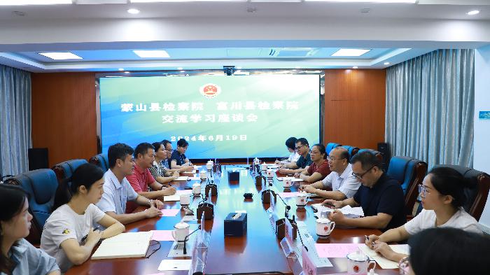 为实现检察履职经验共享、理念互通互鉴,高质效办好每一个案事件,6月19日,梧州市蒙山县检察院党组书记、检察长韦焕成带队一行9人先后到贺州市富川瑶族自治县检察院、八步区检察院开展以“对标先进找差距 比学赶超促提升”为主题的交流学习活动。贺州市富川瑶族自治县检察院党组书记、检察长石坚,八步区检察院党组书记、代理检察长董慧轶及两基层院相关院领导陪同并开展座谈交流。