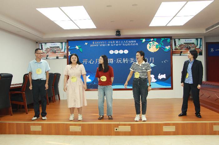 这方探“月”“文斗”刚唱罢,那方打“月”“武斗”即登场。月儿一样的乒乓球“嘀嗒嘀嗒”在球拍上欢快跳跃着、各种稀奇古怪的“风味月饼”站起来又蹲下去……“月圆球圆”“开心月饼蹲”等趣味游戏将活动现场气氛推向高潮,轻松搞笑的活动现场惹得满堂喝彩,欢声笑语不绝,让在场的检察干警尽情释放了工作压力。