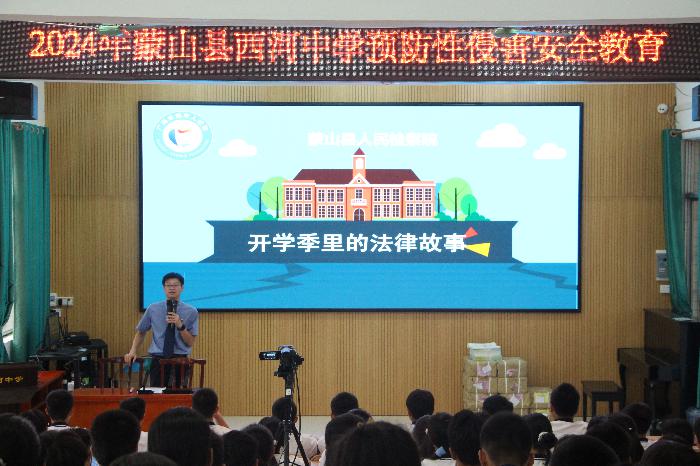 9月24日,“红石榴”检察服务队队员来到了蒙山县西河中学和七年级的同学们聊聊“开学季里的法律故事”。检察服务队员从“为什么要学法律”引入,围绕预防校园欺凌及交通安全等与同学们进行交流,通过普法短视频与真实案例相结合的方式,向同学们传授应对校园欺凌的防范方法及交通事故应急知识。