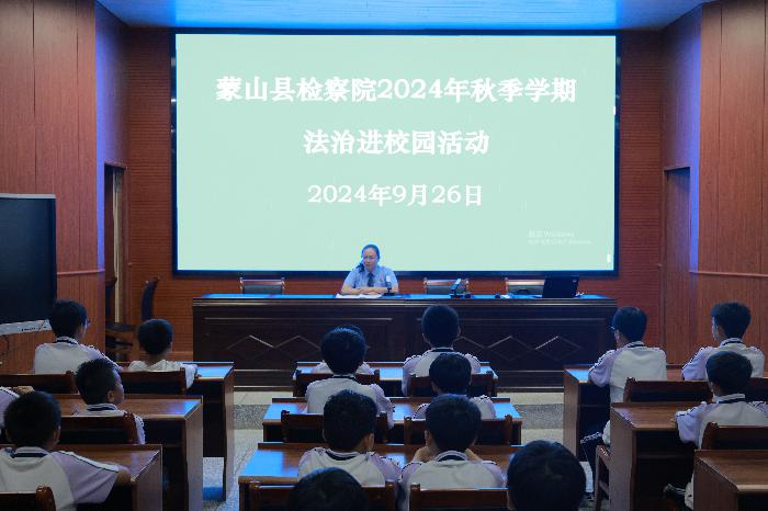 9月25日,蒙山县检察院党组书记、检察长韦焕成带队到蒙山县湄江中学开展法治进校园活动。韦焕成向同学们讲授了“网络安全那些事儿”,“红石榴”检察服务队队员通过剧本演绎的方式将一个个案例改编穿插在法律知识之中,向同学们介绍网络欺凌、网络诽谤、编造虚假恐怖信息、利用网络盗窃以及传播网络有害信息等一系列不良网络行为的特点、危害,呼吁同学们增强网上安全意识,争做网络文明的传播者。韦焕成提醒同学们:“网络并非法外之地,一定要合理、正确地使用网络,做到不造谣、不信谣、不传谣,做个文明上网的好公民。”