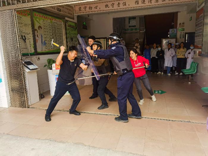 为加强辖区安全工作,提高各单位、站所安保人员和干部职工在防恐防暴应急处理中的有效应变能力。11月25日上午,黄村镇联合派出所、卫生院举行了一场防暴处突安全演练。