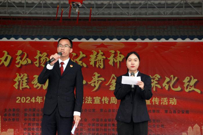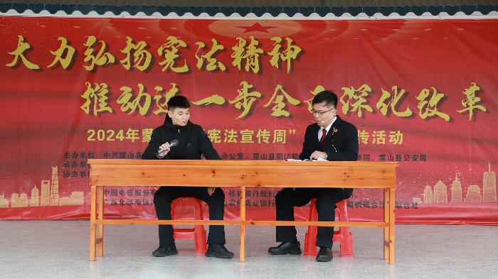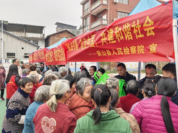 为大力弘扬宪法精神,维护宪法权威,12月4日至6日,在第十一个“国家宪法日”到来之际,蒙山县人民检察院始终将铸牢中华民族共同体意识贯穿法治宣传工作始终,积极深入机关、社区、乡村、学校等开展以“大力弘扬宪法精神 推动进一步全面深化改革”为主题的法治宣传及法治文艺汇演等活动,为辖区群众呈“宪”别样的法治文化“盛宴”。