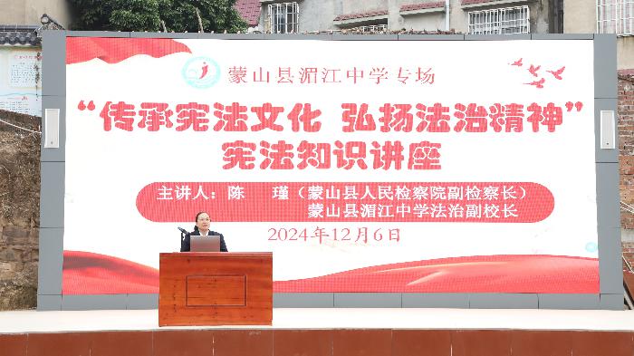 12月6日下午,蒙山县人民检察院“红石榴”检察服务队走进蒙山县湄江中学、蒙山镇第三小学开展以“宪法护航成长路”为主题的法治进校园活动。