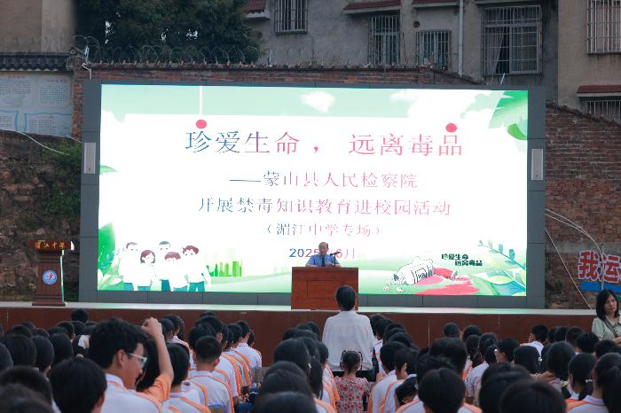 禁毒是世代接力的文明工程,学校是禁毒宣传教育的关键阵地。为进一步助力“无毒”校园建设,6月5日至6月24日间,蒙山县人民检察院“红石榴”检察服务队以“防范青少年药物滥用”为主题,走进辖区湄江、二中、西河、秀才等五所中小学校,为师生带去一节节别开生面的禁毒法治教育课。法治课上,“红石榴”检察服务队队员从青少年这个特殊群体出发,以听得懂、记得住的方式,教授师生如何识辨当前社会上披着“马甲”的各类新型毒品,重点对“上头电子烟”、“奶茶粉”、“笑气”、“邮票”、“可乐”、“跳跳糖”等极具迷惑性、成瘾性的新型毒品进行讲解,进一步提升全体师生的识毒、防毒和拒毒能力。同时队员还向师生阐明滥用国家列管的麻醉药品、精神药品是吸毒行为,并呼吁全体师生要养成“合理用药,预防麻精药物滥用”的健康生活方式。